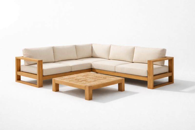 Ensemble de canapé d'angle en teck avec coussins beiges